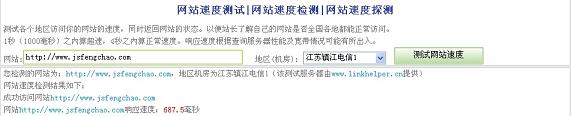 那么这个结果显示我们以江苏镇江电信1这个镜向来测试的结果为www.jsfengchao.com 的打开速度为687.5毫秒,这个结果值应该是网民访问网站可以承受的网站速度了,当然这里我们还可以更换其他地方的镜向再次进行测试,这里就不再做详细讲解的,方法都是一样的,有兴趣的朋友们尤其是的网站主们赶紧来测试一下您公司网站的速度有多快吧! |