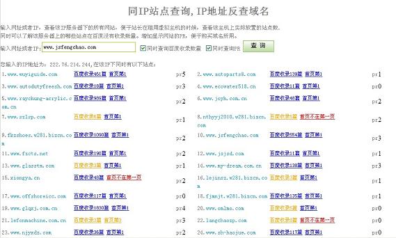 同IP地址站点查询故名思义就是查询您网站所放置的服务器上面一共放置了多少个网站,这些网站的网址是什么,有没有非法的网站放置在您的同一台服务器上会不会影响到你的网站,下面公司就把这个方法详细的讲解一下!