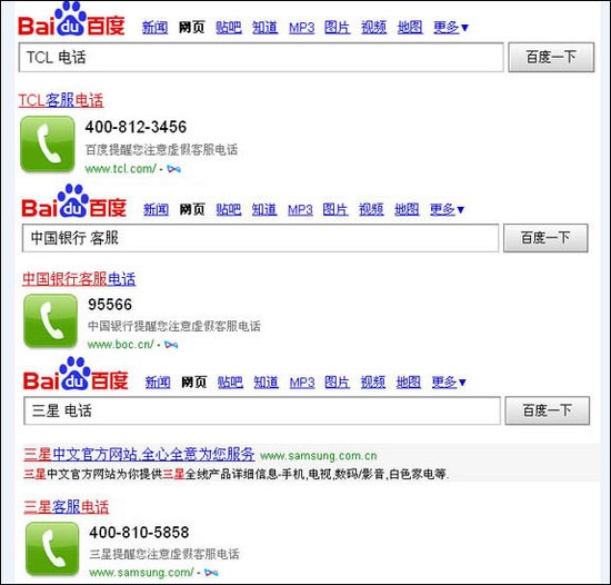知名企业的客服电话将优先在搜索结果中体现(腾讯科技配图)