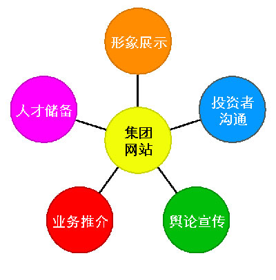 集团网站的作用: 形象展示平台:传递企业的价值观与核心理念,社会责任和未来发展。展示集团品牌形象。 业务推介平台:对于集团的主营业务及重点项目进行推介,增强投资者信心,赢得社会美誉度。 展示产品和服务,与消费者进行沟通。 投资者沟通平台:介绍上市公司业绩及年报等,增强投资者信心,赢得公众信赖。 舆论宣传平台:宣传集团及下属机构的出色业绩、公益投入、社会回馈等,塑造集团的可信赖的公众形象。 人才储备平台:为集团及下属机构建立人力资源平台,及时发布招聘信息,建立人才储备,为集团获得长远竞争力。