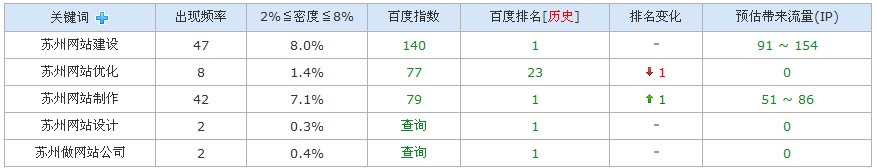 从上图看,排名情况不错,而实际排名要比站长工具所查询到的排名还要高1~2位,抛除网站本身的因素,日均约在70~136 IP之间。这是针对区域性得排名优化情况。但如果去除地域性的关键词排名在百度首页,那又是另外一种结果,我们来看一下: