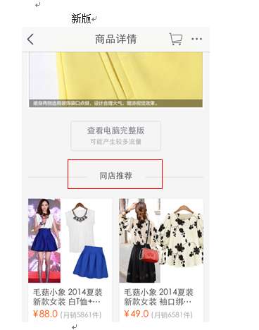 2、“同店推荐”从之前很深的位置改为直接出现在手机详情页的下面。