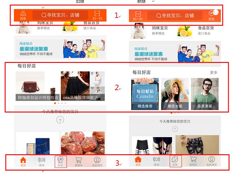 这次手机淘宝app改动的地方很多,不可能一一说清。但是不管改动多大无非是以下三种情况: